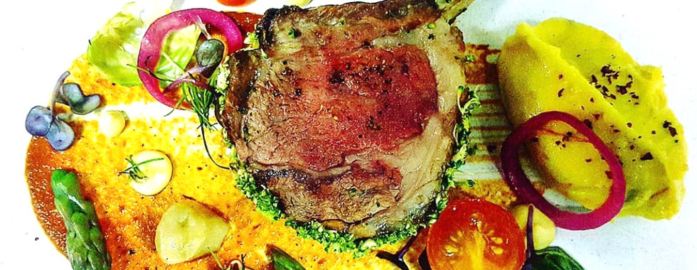 - Assemble the dish Take a nice and clean plate , pour the Makhni sauce onto the plate , add broccoli crusted lamb chop an, ghee roasted asparagus, saffron mash potato
